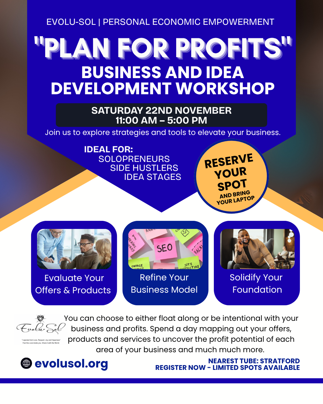With the "Plan For Profits" Workshop, we layout the anticipated revenue and profits, and a whole lot more, to give you a financial roadmap for your business, letting you focus your time and efforts in the right places.